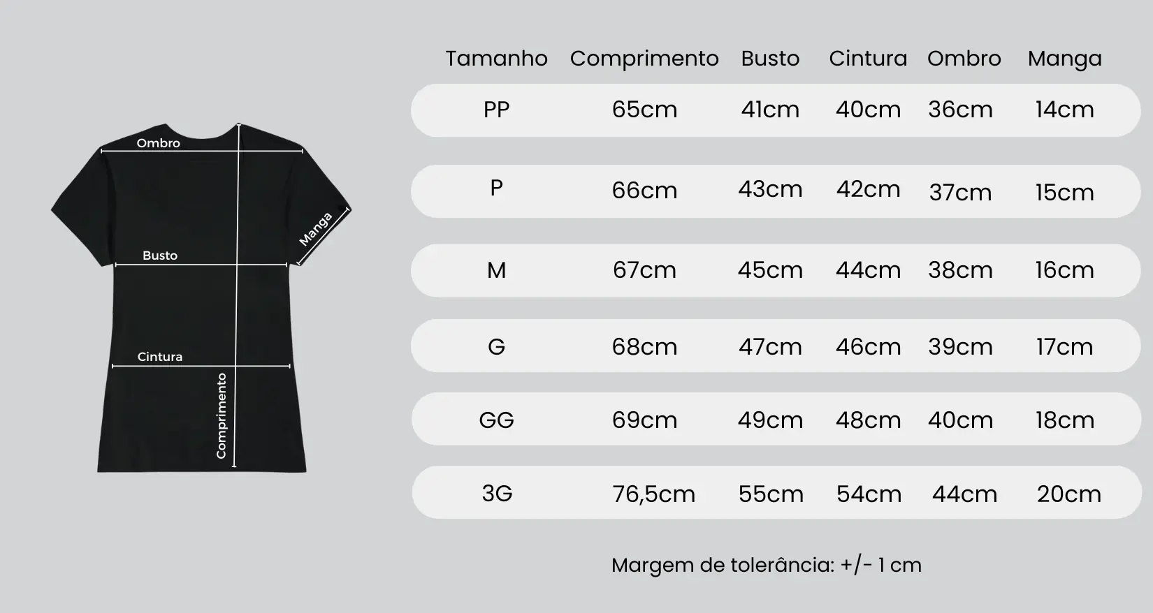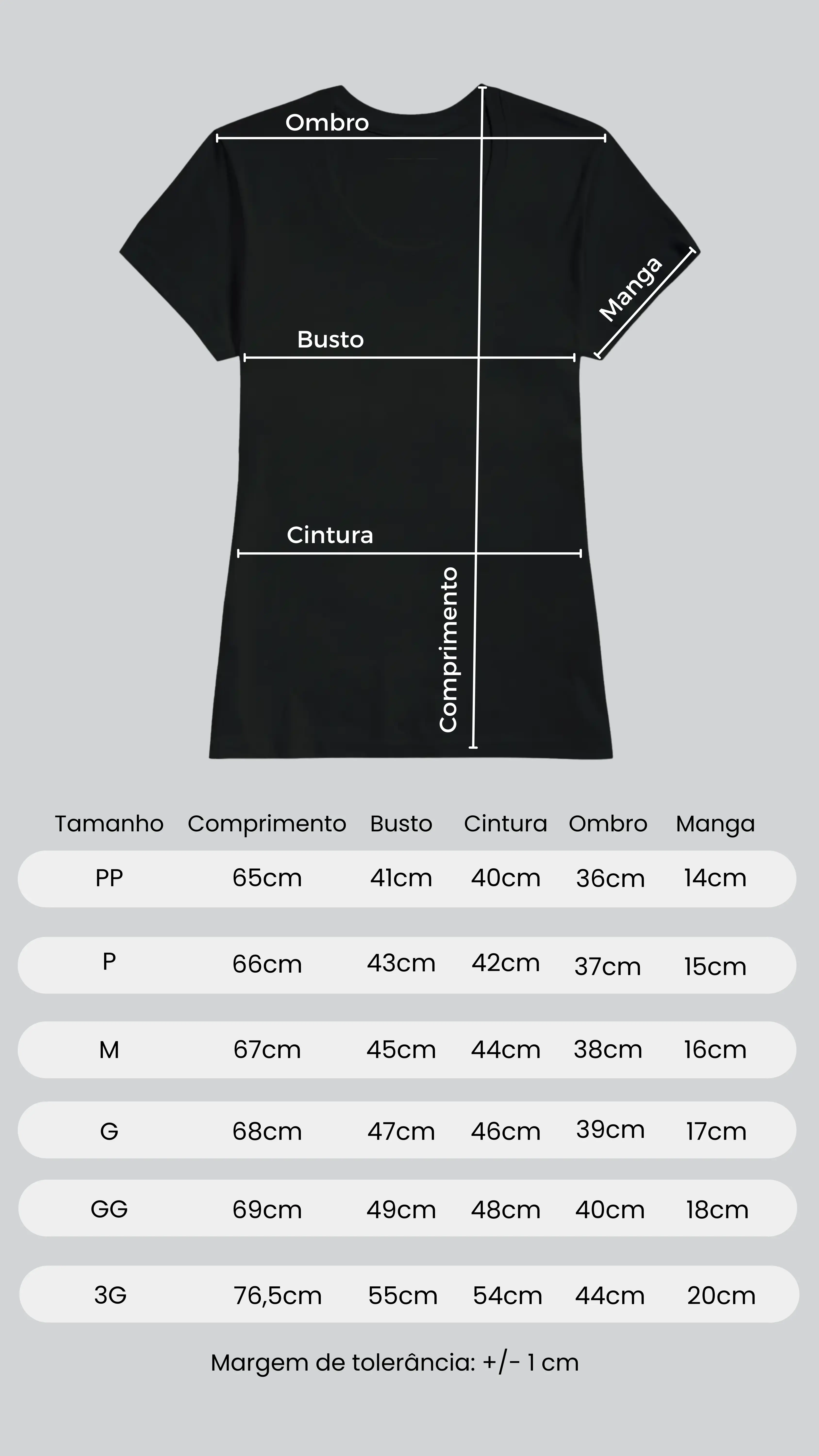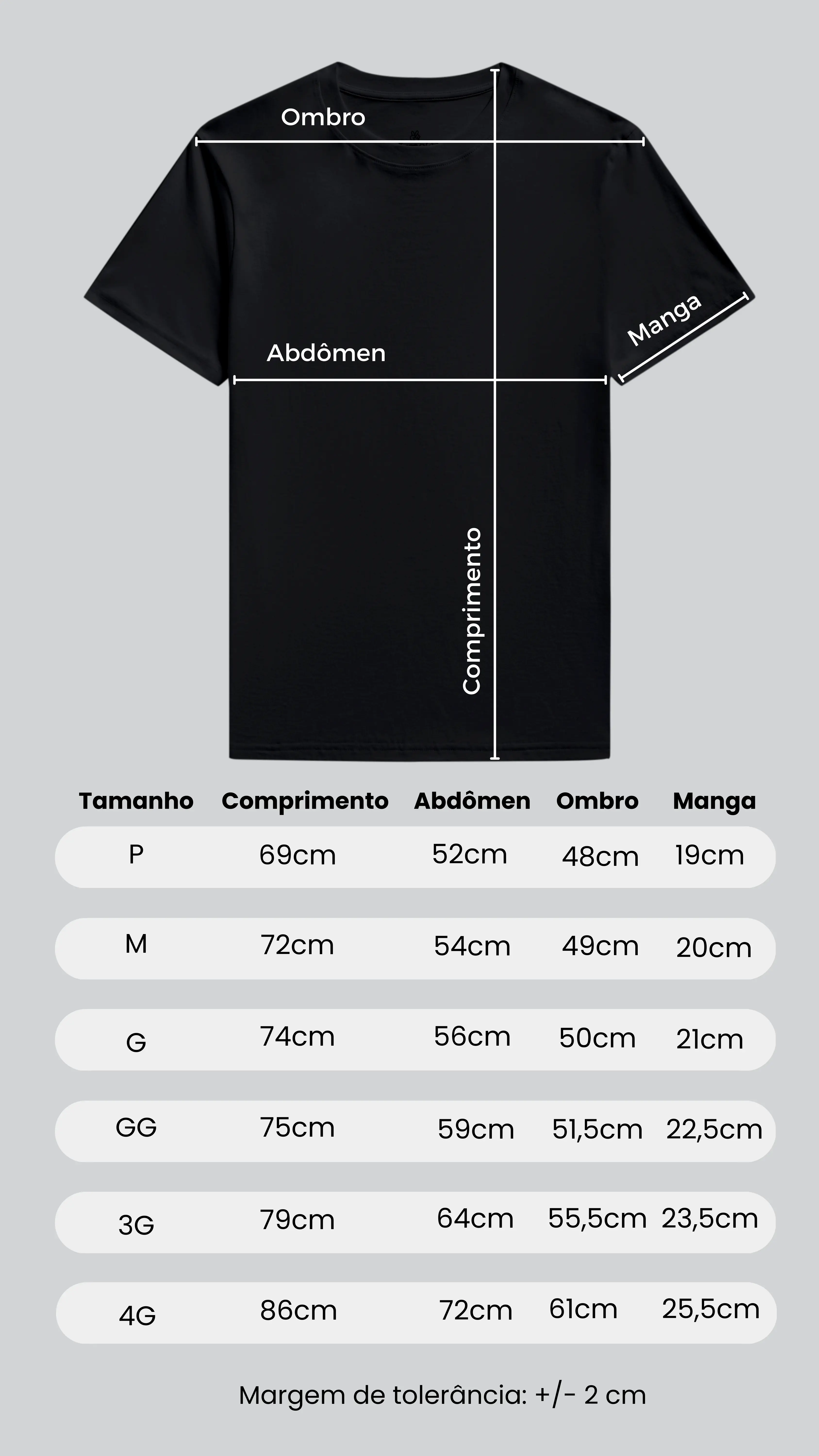 Nossas camisetas são de excelência em algodão brasileiro, ideais para todos os climas. Todas as cores são 100% algodão; exceto cinzas: 88% algodão e 12% poliéster.